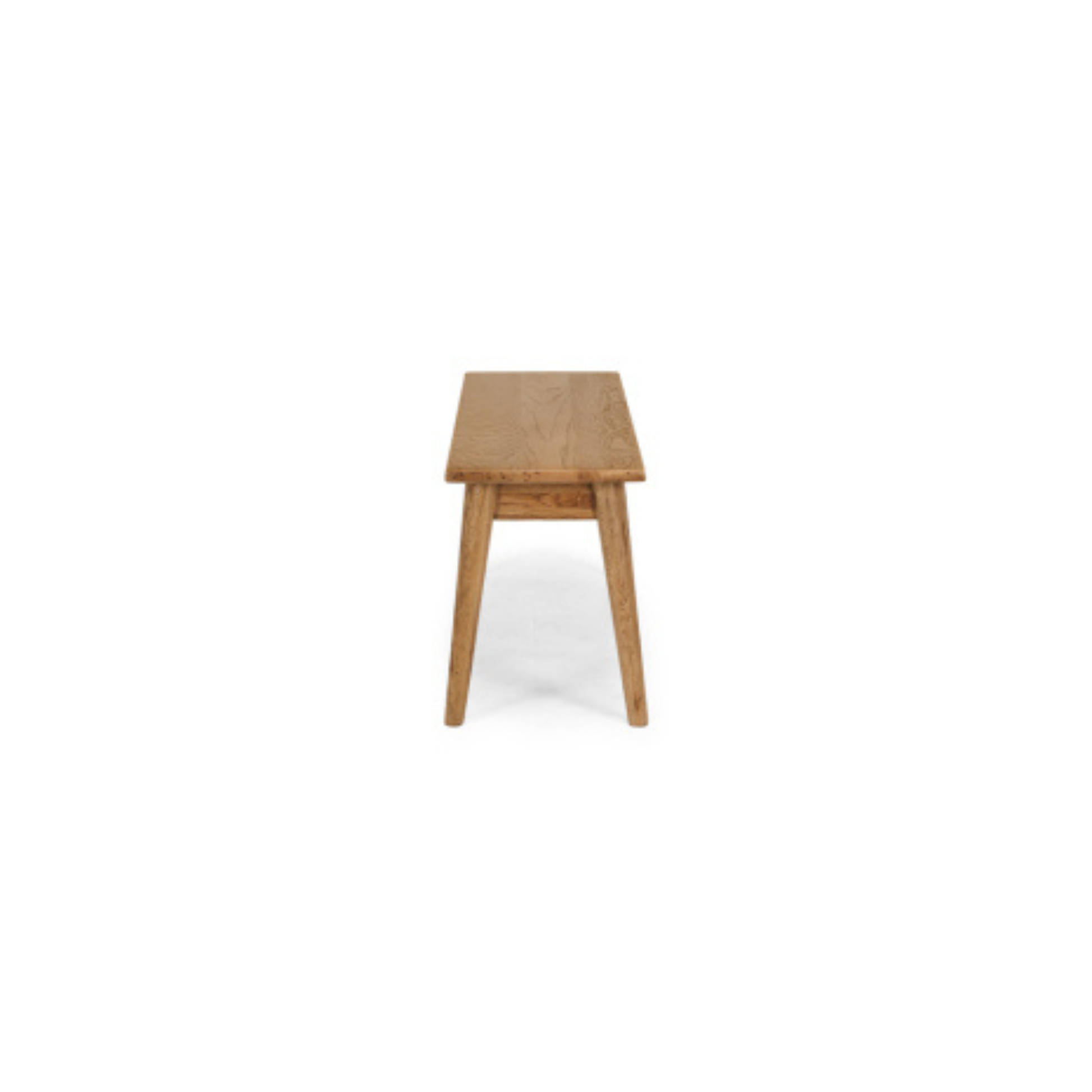 Crafted from solid smoked oak, the Reeves Bench showcases striking natural grain patterns that bring warmth and character to your dining space. Its lightly polished finish enhances the wood's organic beauty while delivering a smooth, soft-touch surface. Featuring tapered legs that echo mid-century design, this bench combines refined aesthetics with robust durability. Perfectly sized to complement the Reeves 150 Dining Table, it slides neatly between the table's legs for a coordinated, integrated look.